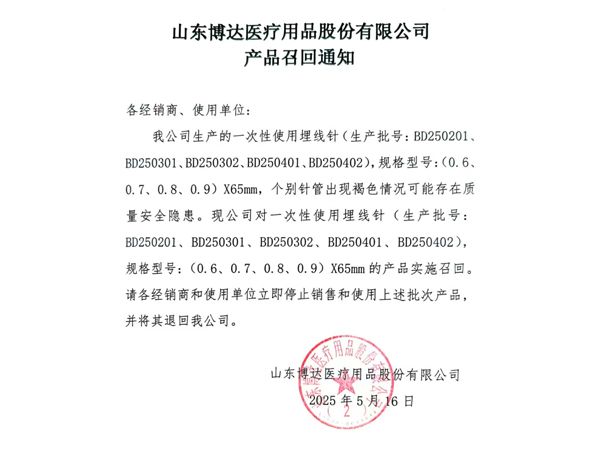 山東博達醫(yī)療用品股份有限公司是生產(chǎn)可吸收性外科縫線專業(yè)廠家,主要產(chǎn)品有可吸收縫合線 、內(nèi)窺鏡圈套線、可吸收外科縫線、快吸收美容線、醫(yī)用羊腸線 膠原蛋白線以先進的生物技術(shù)提取了健康哺乳動物內(nèi)臟的膠原蛋白為基材,采用先進的工藝加工而成,線體的主要成分為高純度膠原蛋白,并獲得了國家發(fā)明專利,頒布了YZB/國6301-2013《可吸收性外科縫線》產(chǎn)品標準,并通過了ISO9001:2015和ISO13485:2016質(zhì)量管理體系認證。